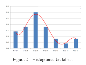 A seguir é preciso organizar os registros das falhas e suas respectivos informações de ciclo de operação no momento da falha. Para tanto é necessário definir a “amplitude do rol (A)”, a “quantidade de classes (K)” e a “amplitude de intervalo de classe (h)”.