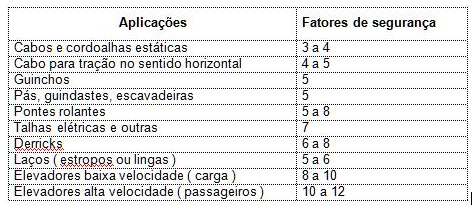 O fator de segurança acima não é adequado para o cabo de aço sofra uma operação brusca ou carregamento brusco da carga.