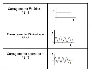 Outro fator importante a ser considerado em relação Fator de Segurança é o tipo de carregamento.
