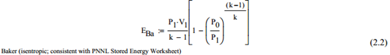 A principal alternativa é a equação a Equação de Brode acima é a Equação de Baker (2.2), temos que a ASME PCC-2, o artigo 5.1, Apêndice II -(2008) utiliza uma forma de Baker para calcular a energia armazenada para teste de pressão pneumática.