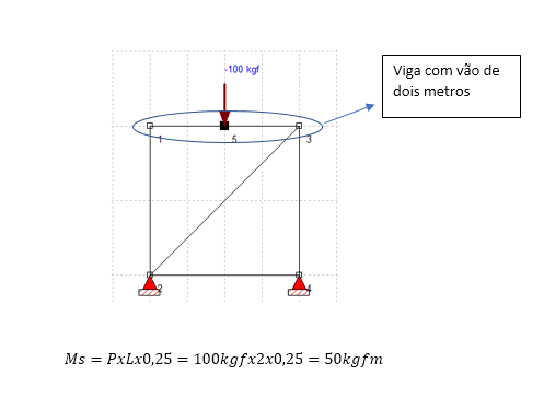 Na grande maioria das configurações, quem faz a o papel de viga é a própria barra já apresentada anteriormente, a grande preocupação é que essas barras tem baixa resistência a vencer vãos, ficando aqui uma grande preocupação na hora de fazer um projeto. Existe uma grandeza física, que nos fornece isso em números, que é a resistência a momento fletor de uma barra de andaime, normalmente fica em torno de 60 kgfm. Para se ter uma ideia, imagina uma pessoa de 100 kg de massa, está exatamente encima de uma viga de andaime com 2 metros de vão. Considerando uma carga pontual pode-se aplicar: