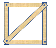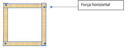 Agora você começa a aplicar uma força horizontal para ver o que acontece, e percebe que o quadrado é completamente instável e fica sambando conforme você varia a força. Então você decide colocar uma diagonal: