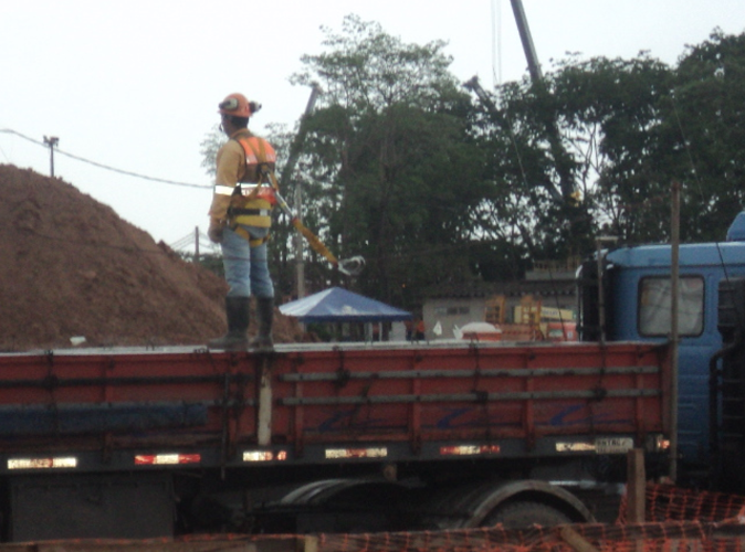 É comum ver adoção de linhas de vida na carroceria de caminhões como esta da foto abaixo. O empregado acopla o cinto na linha de vida, e se sentindo seguro, chega a se expor mais ao risco de queda do que se estivesse desacoplado de uma linha de vida, como na foto abaixo.