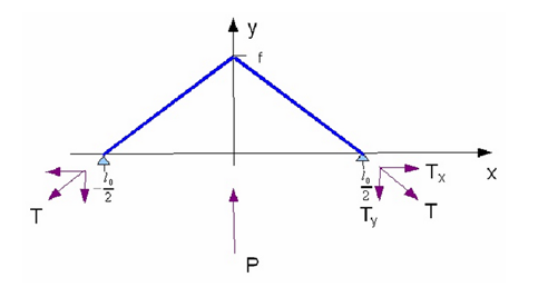 T= kx= (hipotenusa – lo/2)x67893=22971N= 2340 kgf