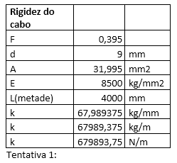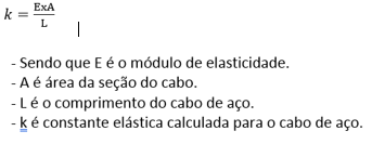 A rigidez do cabo de aço é calculada da seguinte maneira: