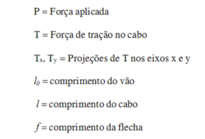 – Se houver mais de um vão, estes cálculos não se aplicam, pois o restante do comprimento de cabos de aço torna o cálculo mais complexo.