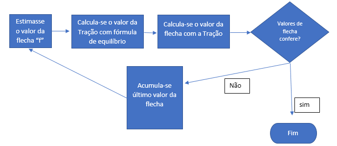 Ou seja, a solução única desse sistema é uma flecha de 0,521 metros, sendo que a tração do cabo será de 2298 kgf. Por ser um algoritmo simples, o mesmo pode ser feito em recursos de programação como Visual Basic e outros