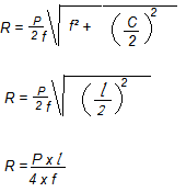 R² = [(P x C) / 4f] ² + (P/2) ²