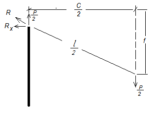 Determinando esforços envolvidos, para tal seccionamos a linha no meio, já que as reações e esforços serão iguais em ambos os lados: