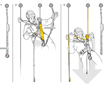 • Escape: Equipamento designado para profissionais de serviços de emergência para escape individual, em situações onde haja risco de vida. Ex.: bombeiro que sai pela janela de um prédio em chamas, descendo até o andar inferior, onde não há fogo.