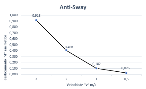 Com a mudança do vetor velocidade menos abrupta temos uma redução no balanço da carga de 97% no deslocamento, reduzindo de 918 mm para 26 mm.
